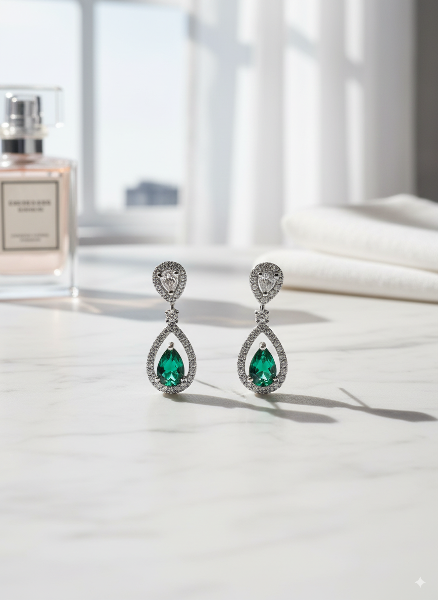 Be the first to review “Emerald Elegance Drop Earrings – S925 Sterling Silver & Lab-Created Emerald Jewelry”